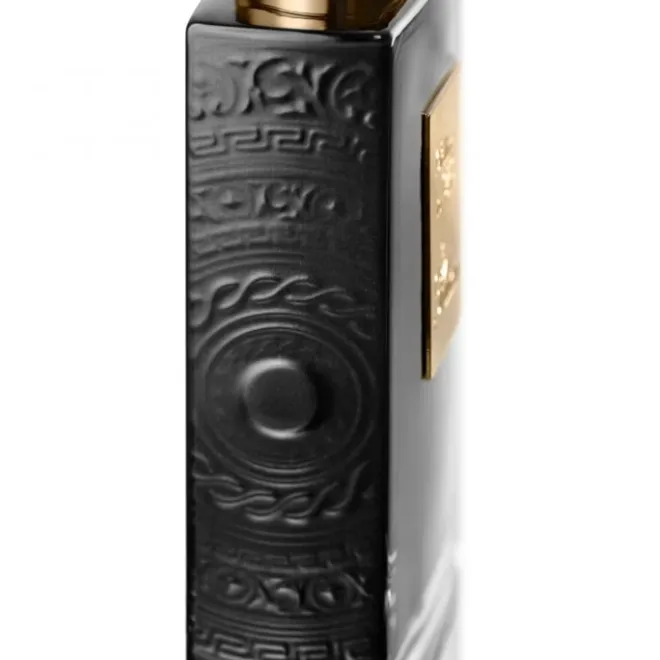 Les parfums de la famille des bois de caves sont ornés d’une très reconnaissable laque noire et leur bouteille a été minutieusement gravée de chaque côté, avec la représentation du bouclier d’Achille.