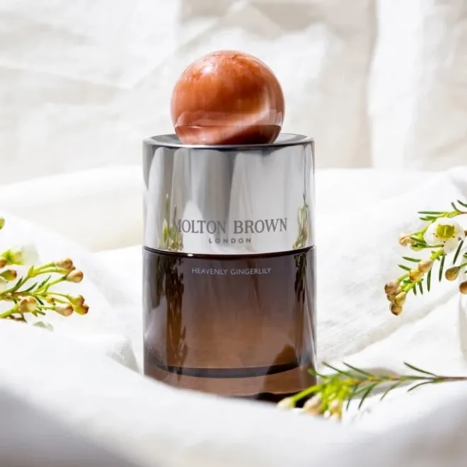 Le gingembre frais et la cardamome se mêlent à la tubéreuse et au lys, rehaussés d’une signature olfactive de jacinthe.