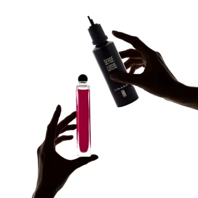 Offrir plusieurs vies à l’iconique flacon Serge Lutens est désormais possible grâce à la recharge du parfum La fille de Berlin, un parfum détonnant, épicé et épineux de la Collection noire de Serge Lutens.