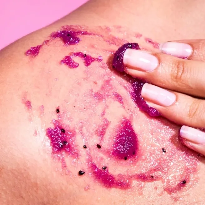 Sa délicieuse texture fondante associe grains de sel, pépins de cassis et huiles de cassis et de noyaux de pêche pour exfolier en douceur la peau et la débarrasser de ses impuretés.