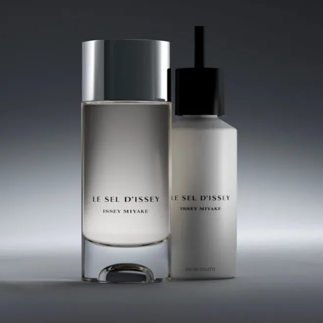 Le flacon Le Sel d’Issey eau de toilette est rechargeable grâce à sa recharge de 150 ml.