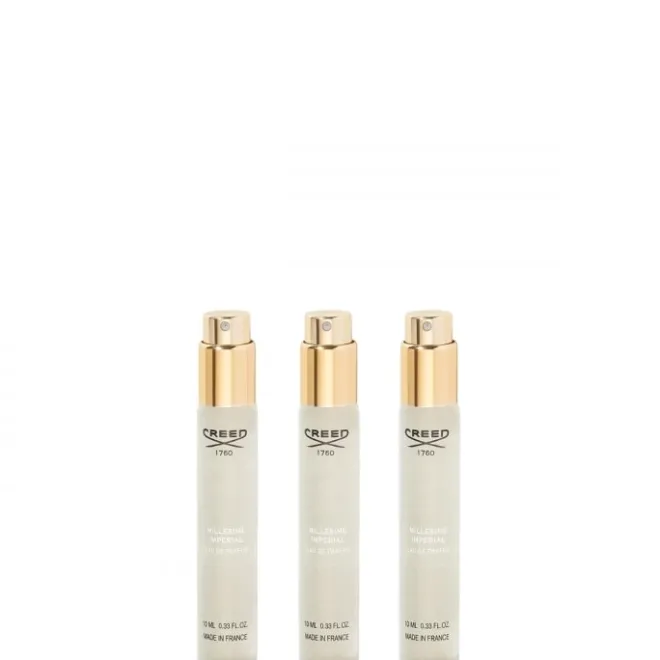 Ce coffet comprend trois flacons pré-remplis de 10 ml du parfum Millesime Imperial parfaitement prévus pour votre vaporisateur Creed*.