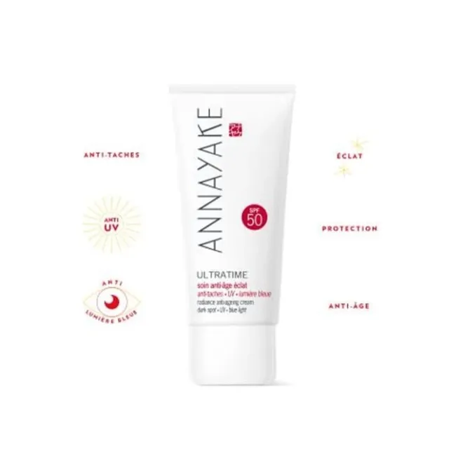 ANNAYAKE a associé une photoprotection SPF50 à un complexe d’actifs anti-âge pour agir simultanément sur les signes de l’âge et sur les agressions quotidiennes subies par la peau (UV, lumière bleue, pollution).