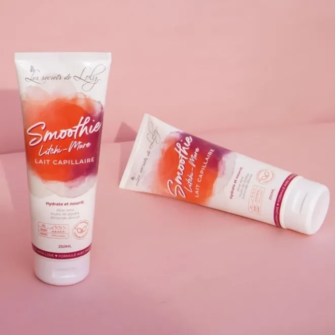 Formulé à 99,2 % d’origine naturelle, le Smoothie litchi-mûre est un complexe hydratant riche en aloe vera, en beurre de mangue, en huiles d’amande douce et de jojoba apporteront toute la nutrition nécessaire à vos cheveux.