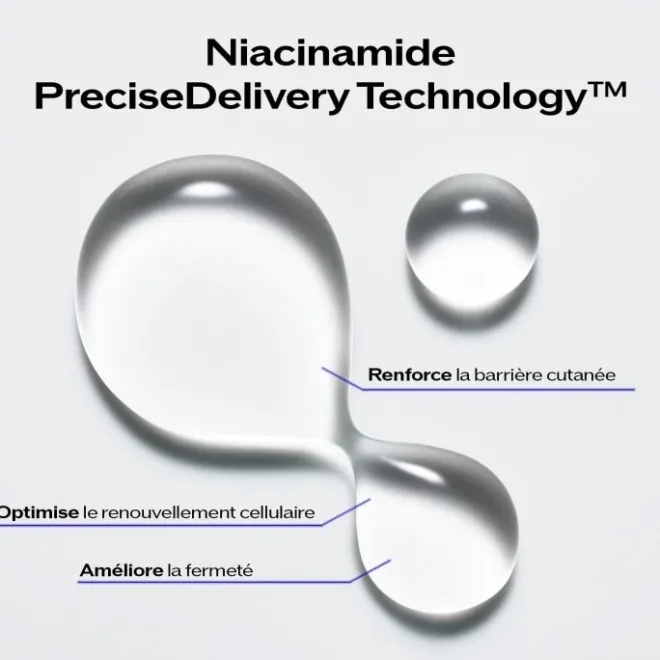 - Libération précise et contrôlée du Niacinamide à la bonne profondeur de la peau**, maximisant ainsi sa pénétration et son efficacité.