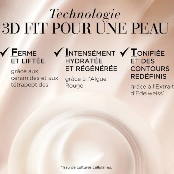 Advanced Ceramide Crème de Jour Liftante et Raffermissante est une crème anti-âge contenant 5x plus de céramides. La technologie 3D FIT permet de raffermir, d’hydrater intensément et d’unifier le teint. 1 semaine pour des contours du visage visiblement liftés, plus fermes et mieux définis.
