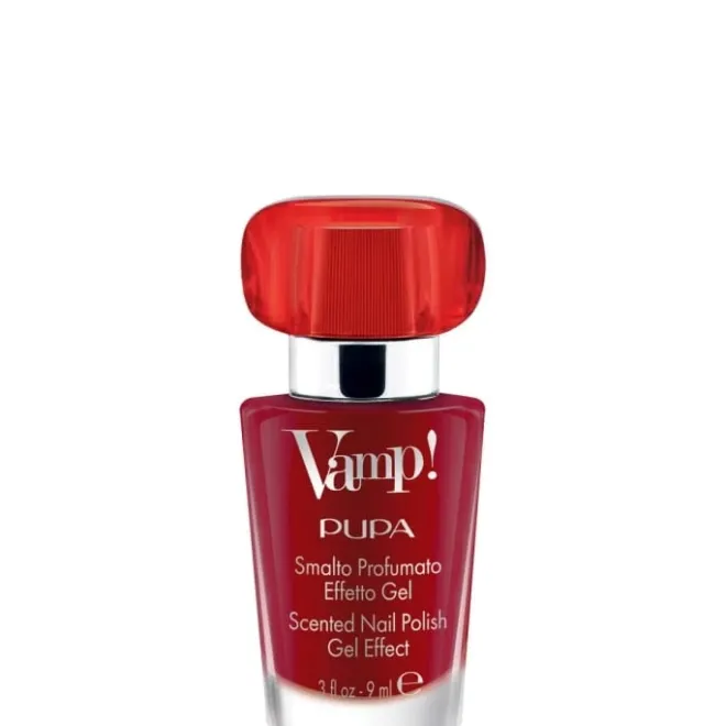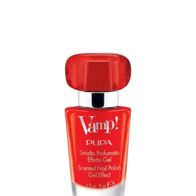 Vamp! est le vernis décliné dans les mêmes fragrances que l’Eau de Parfum Vamp!, pour des ongles délicatement parfumés à l’effet gel ravissant. Sa texture unique permet d’obtenir un effet épaississant tridimensionnel à la brillance extrême. Les ongles gagnent en volume grâce à un film de couleur homogène à la finition ultrabrillante, exceptionnellement résistant aux écaillements. Le parfum se révèle lorsque le vernis est sec et, grâce à la haute concentration de la fragrance présente dans la formule, les ongles sont délicatement et durablement parfumés. Le flacon rappelle une véritable miniature de l’Eau de Parfum Vamp! et reprend la forme iconique du mascara Vamp!. L’applicateur « fan brush » – au format plat en éventail doté de 300 poils arrondis – combiné au bouchon interne nervuré assure une application facile et fluide et un dosage uniforme et contrôlé de la couleur.